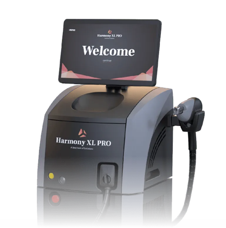 The Harmony Pro XL is a versatile laser platform that has various treatment modules. Dye VL is a specific application for the Harmony Pro XL system and is designed to address vascular lesions and rosacea concerns with its specialised technology. Whereas the Harmony Pro XL mainly focuses on toning, tightening and lifting the skin, the Dye VL treatment adds to the treatment by targeting the haemoglobin to reduce the appearance of vascular lesions and rosacea.